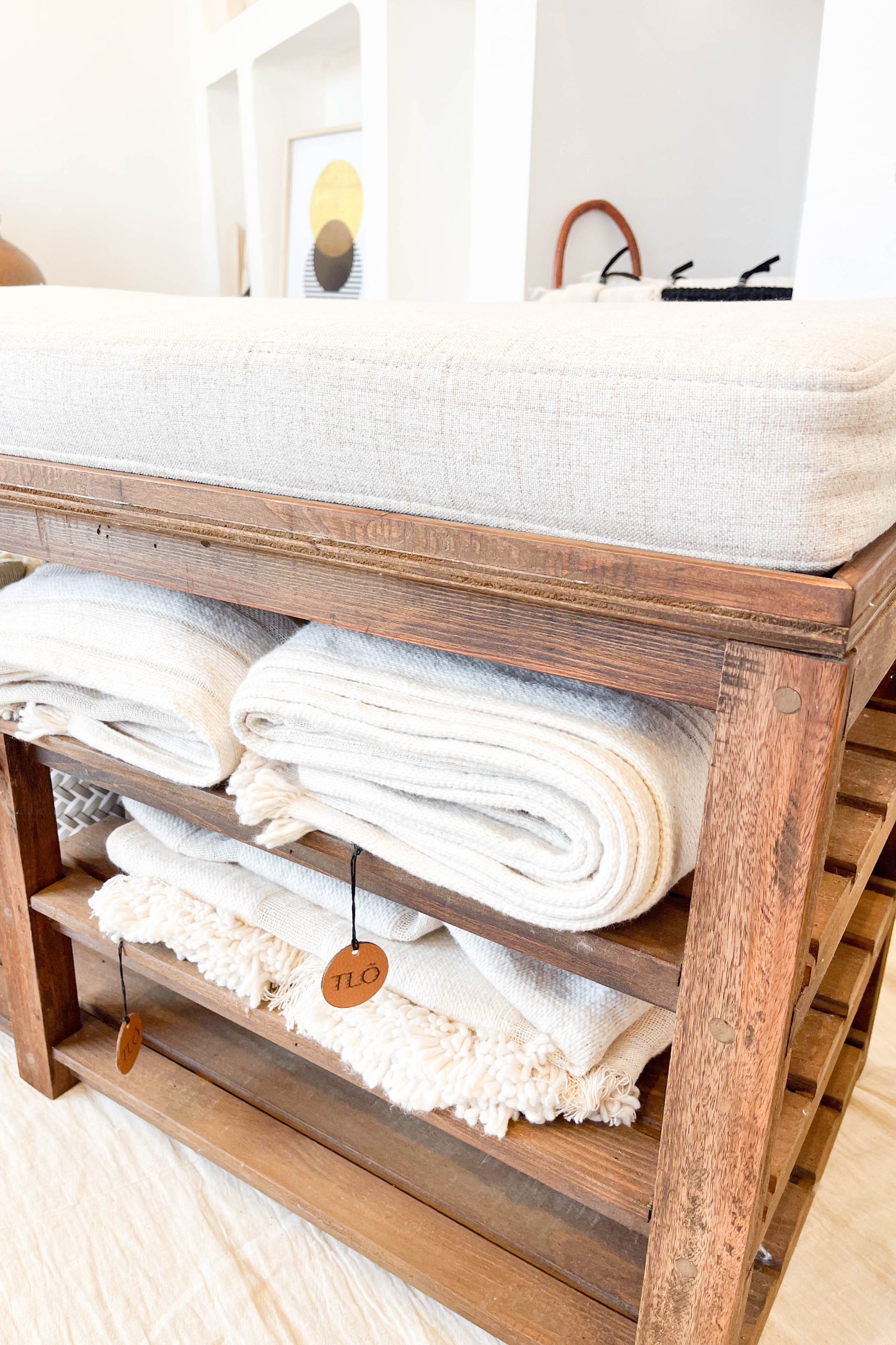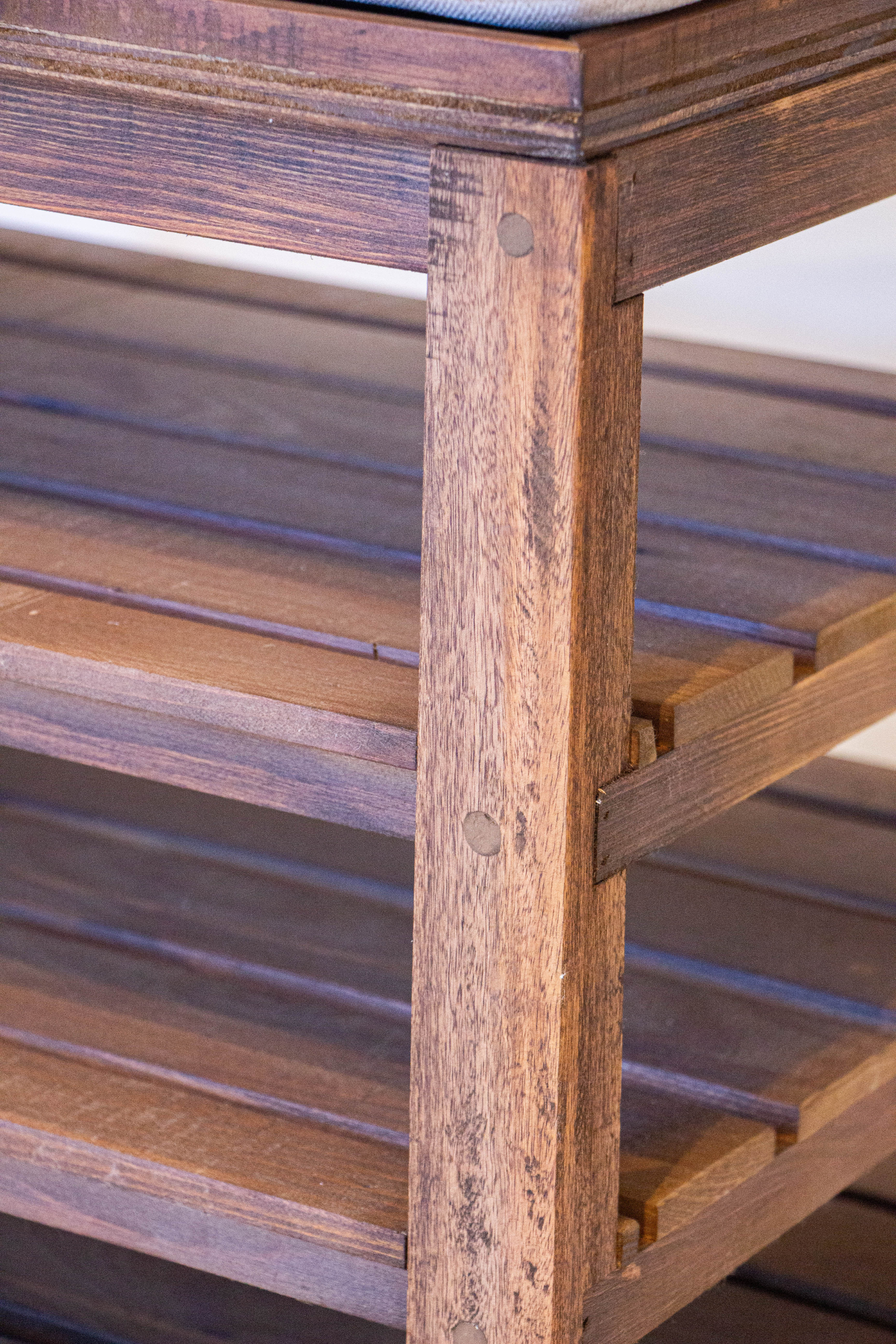 Madera: Curupay con álamo con laca cristal satinada al agua. Tejido almohadón: pana Tokio