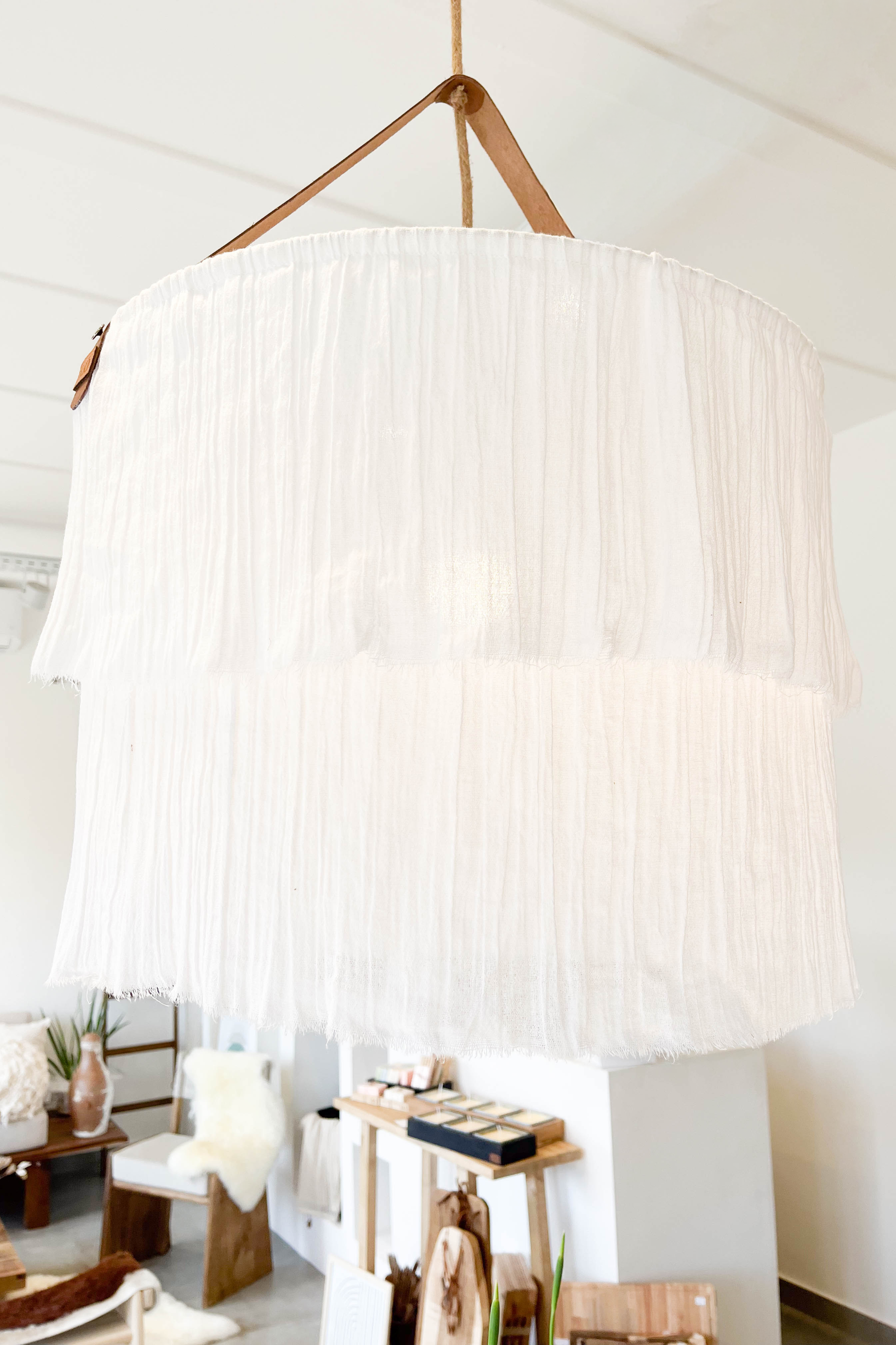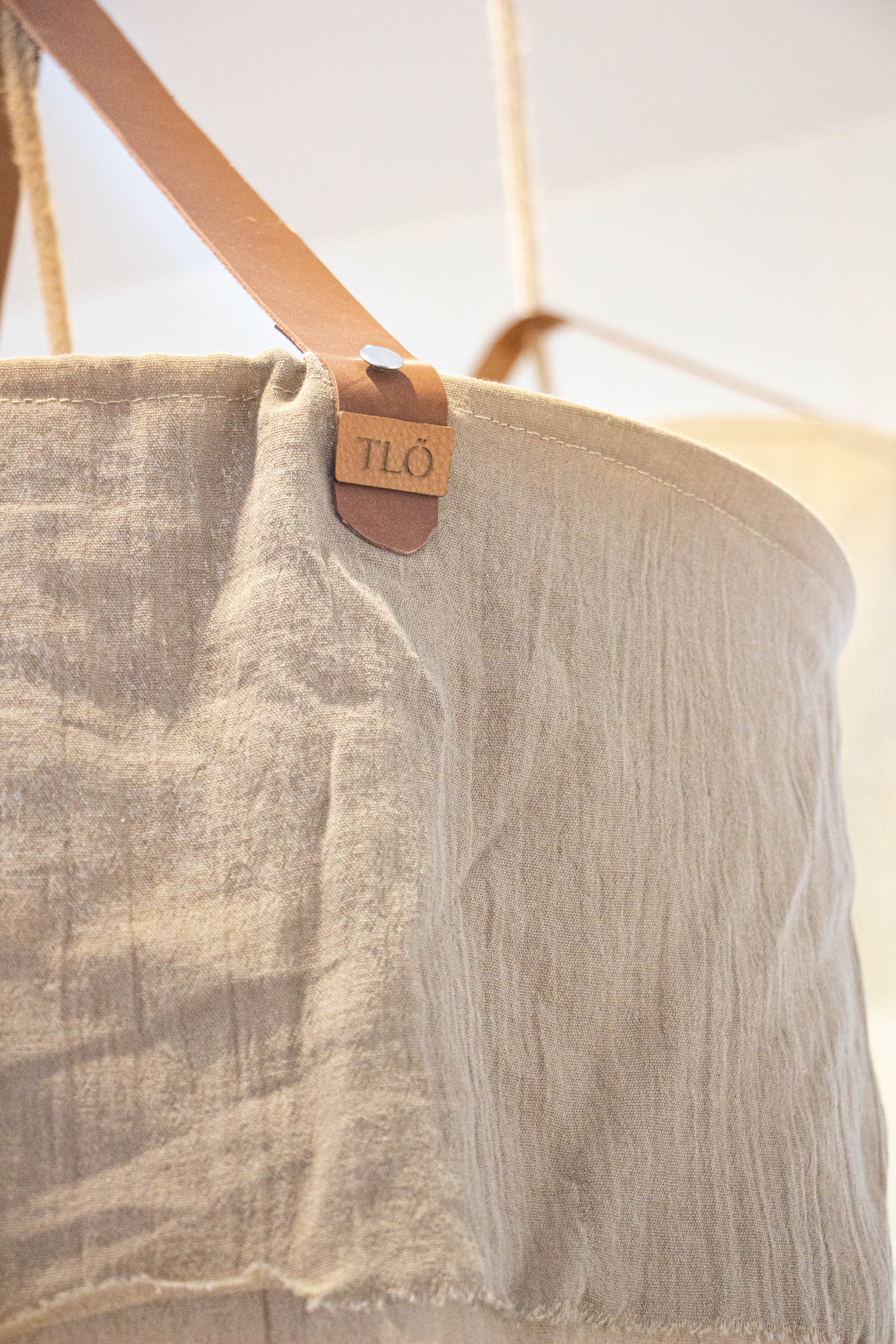 Tela rústica con cable revestido y detalle en cuero